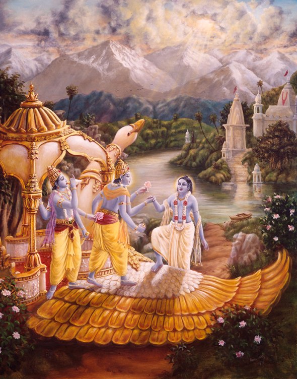 Acompanhado pelos Vishnudutas, Ajamila, então, embarcou em um aeroplano dourado, que o levou pelos céus diretamente para a morada do Supremo Senhor Vishnu, o esposo da deusa da fortuna. Embora estivesse destinado a ser levado para o inferno pelos Yamadutas, Ajamila foi salvo pelos Vishnudutas e pôde ir de volta ao lar, de volta ao Supremo, por ter cantado o santo nome do Senhor na hora de sua morte.