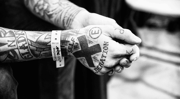 Earth Crisis, famosa banda Straight-edge, com o característico xis atrás da mão.