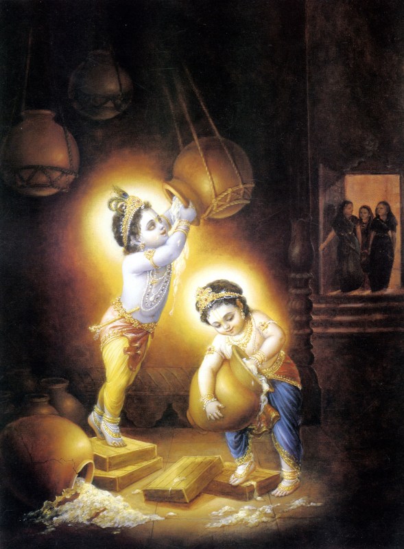 Para ajudar as almas rebeldes a saírem do emaranhamento material e se reconectarem a Ele, o Senhor aparece pessoalmente neste mundo e exibe Seus passatempos para atrair nossa mente e nosso coração para o Seu serviço. Alguns dos passatempos mais famosos consistem no Senhor roubando de Seus devotos. Krishna desfruta transcendentalmente ao roubar manteiga e iogurte das vaqueiras de Vrindavana. Também sente imenso prazer roubando as vestes das jovens camponesas.
