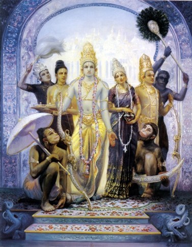 Contudo, a queda de Ravana não é apenas um aviso apocalíptico; é também um arauto de esperança e felicidade, porque nos ensina que o Senhor é competente na destruição do mal tanto interior como exterior. O mesmo Senhor Rama que destruiu Ravana há milênios apareceu agora como Seu santo nome para destruir o Ravana no íntimo do coração das pessoas. O santo nome nos oferece felicidade verdadeira, não por meio da imitação de Deus, mas por meio do amor a Deus; não nos tornando heróis de imitação, mas nos tornando heróis-servos.