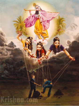 No entanto, aquele que for afortunado segurará a corda da consciência de Krsna, após o que o mestre espiritual o ajudará a sair deste escuro mundo de sofrimento e o levará ao feliz e iluminado mundo da consciência de Krsna.