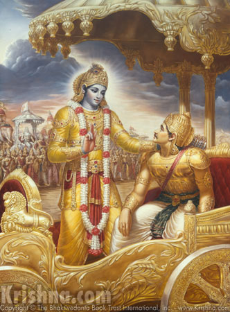 Foto: Krishna e Arjuna no diálogo que constitui o Bhagavad-gita.